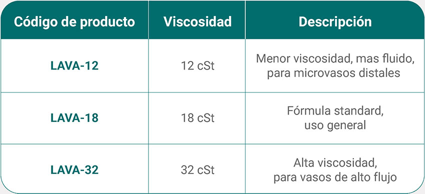 • Amplios grados de viscosidad (12 cSt, 18 cSt & 34 cSt), para adaptarse a diversos requisitos clínicos.