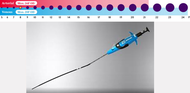 4. Max. OD 26F/0.340 inches/8.62 mm; Max. OD 29F/0.378 inches/9.59 mm. Tests performed by and data on file at Abbott.